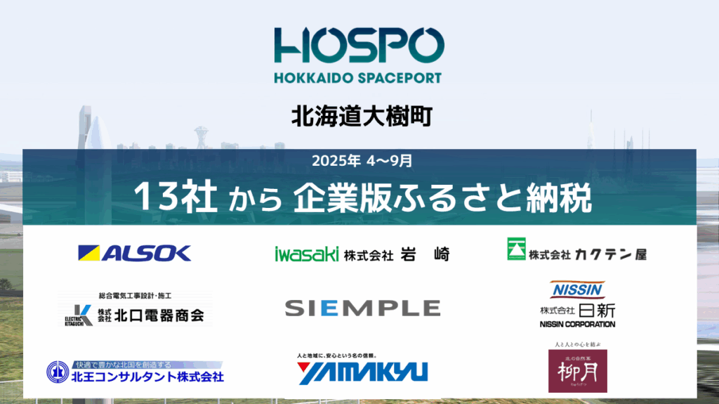 北海道大樹町とSPACE COTANは、北海道スペースポート(HOSPO)プロジェクトの資金として、今年4月から9月までの間に、北海道内外の13社から企業版ふるさと納税の寄附を受け取った。